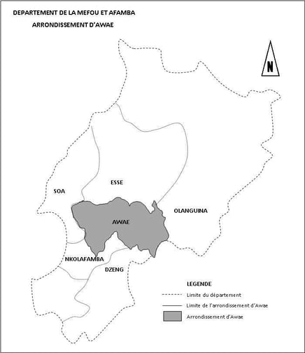 Date de création : 1977 Limites : Traversée par le nationale N°10 qui relie la Région du Centre à celle de l’Est, la commune d’Awae couvre 900 Km2. Elle est limitée :