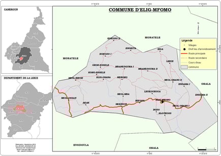 Date de création : 1993 par le décret N°93/321 du 25 novembre 1993 Limites : La Commune d’Elig-Mfomo couvre une superficie de 144km2 et est répartie sur 25 villages. Elle est limitée :