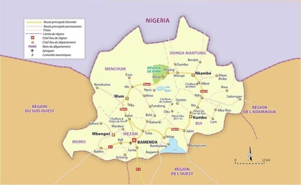 Création : 1972 Capitale : Bamenda Contact Tel : (+237) 243 36 11 14 Fax : (+237) 243 36 41 09 Email : nordouest@minatd.gov.cm Site web : http://www.northwest-cameroon.com Bref historique : L'ancienne province du Nord-Ouest est née de l'éclatement, en deux entités, de l'ancienne république fédérée du Cameroun Occidental, au moment de la création de l'Etat unitaire, le 20 mai 1972. L'autre entité créée est la province du Sud-ouest (capitale Buéa).